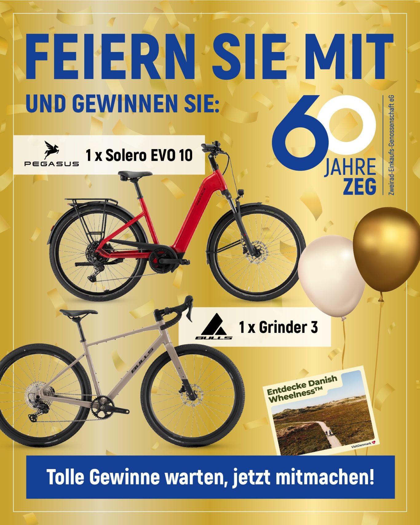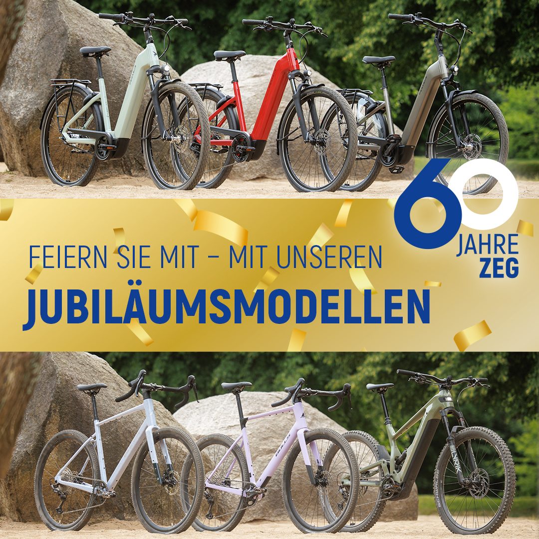 Für den Fahrradfachhandel ist 2026 ein ganz besonderes Jahr: Zum 60. Mal jährt sich die Gründung der ZEG, Europas größter Zweirad-Einkaufsgenossenschaft mit Sitz in Köln. Auch für uns ist das ein Grund zum Feiern – und dieses Jubiläum möchten wir mit besonderen Angeboten für ganz besondere Jubiläumsmodelle an unsere Kundinnen und Kunden weitergeben.